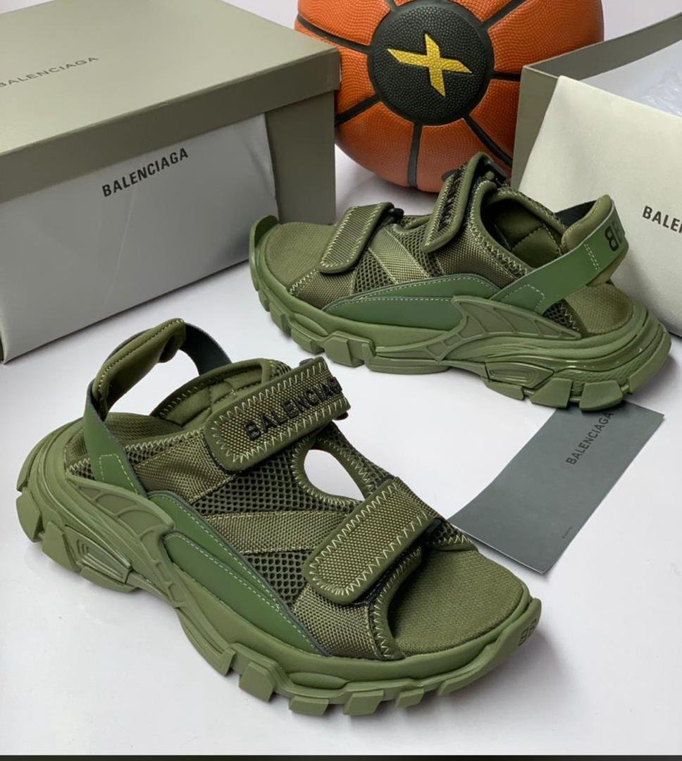 Step into style and comfort with the Balenciaga Triple-S Velcro Sandals in a bold olive green hue. Designed for both luxury and functionality, these sandals feature the signature Triple-S chunky sole, providing a sporty yet fashionable aesthetic. The adjustable Velcro straps ensure a customized fit, while the breathable mesh material adds a lightweight touch perfect for warmer weather.