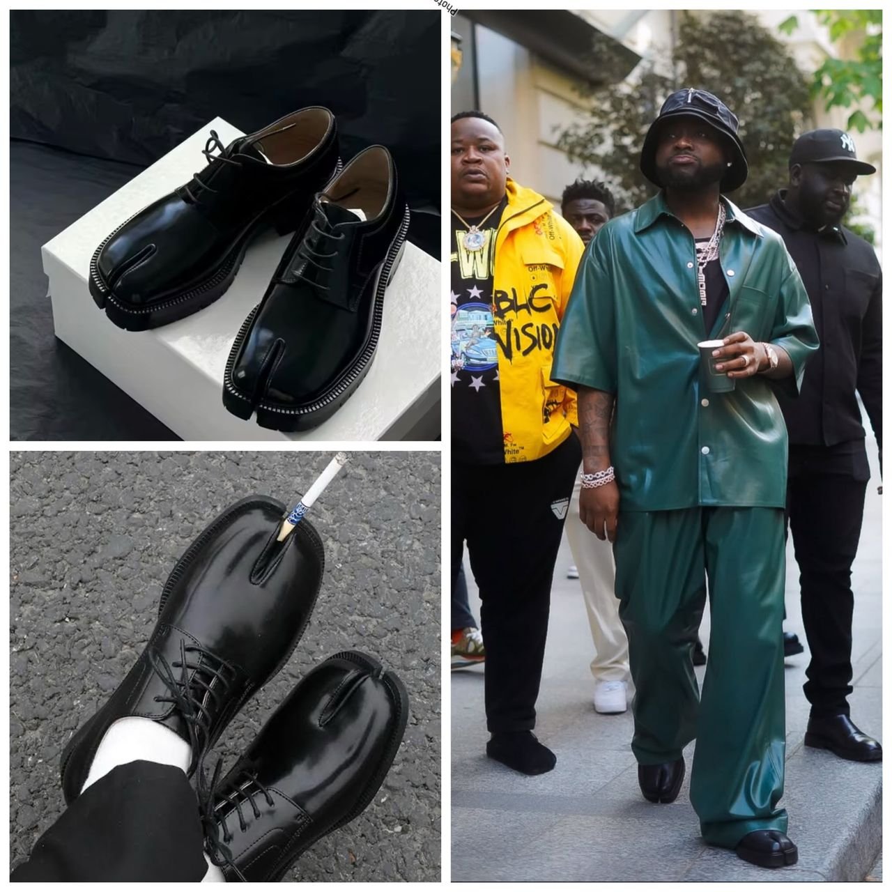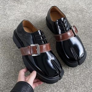 High-converting product listing showcasing the latest black leather shoes with unique split toes, perfect for Nigerian fashion enthusiasts.